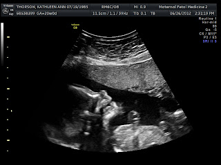 So here he is--Baby Boy Thorson. They paid a lot of attention to his heart, then looked at his stomach, kidneys, bladder, spine--all sorts of stuff. Everything looks great. 10 fingers, 10 toes, and 1 little something else (not pictured). My favorite picture is of his little lips and nose! We also watched him gulping down amniotic fluid. Technology is amazing. And you know, the formation of human life is pretty cool too. And in the waiting room, Mom became the first to feel him kick from the outside!